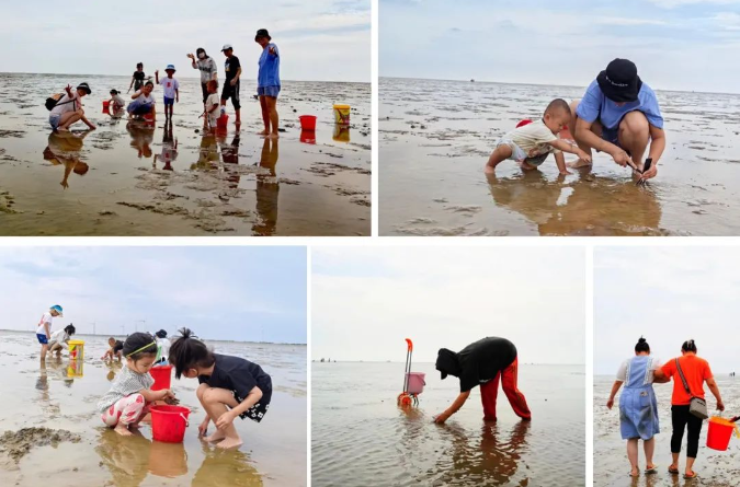 金泥湾赶海拾贝活动,潮起潮落间,收获满载而归的喜悦,感受拆“盲盒”般的惊喜。
